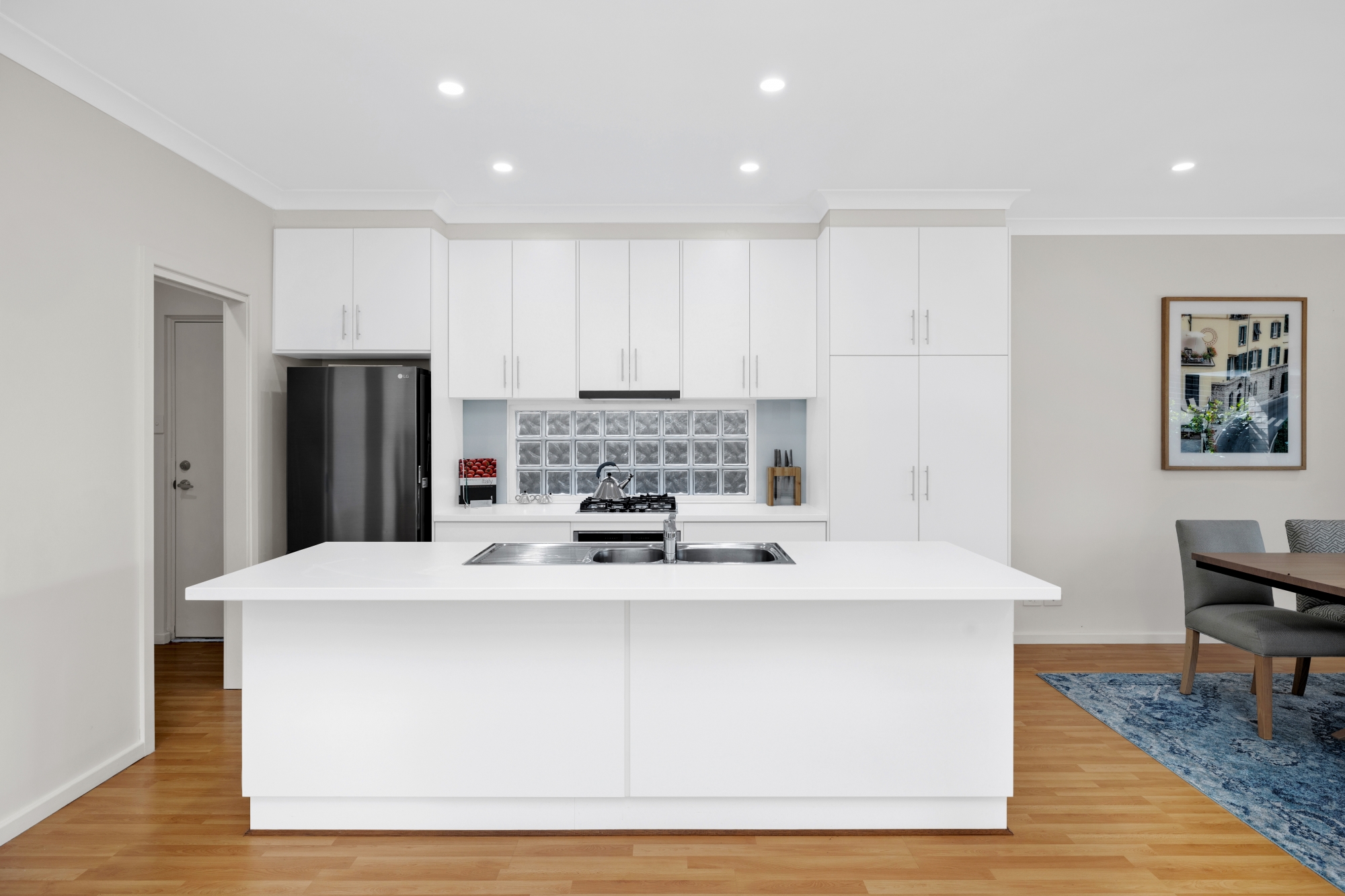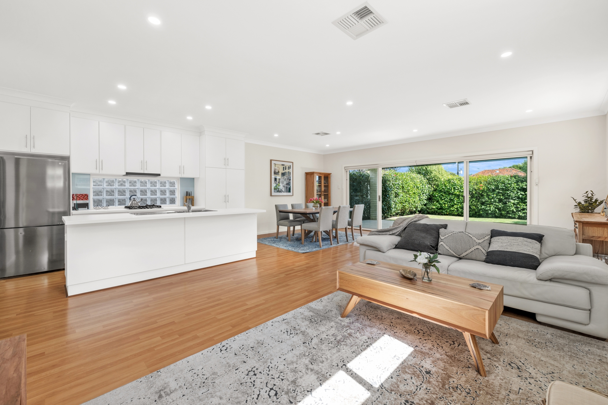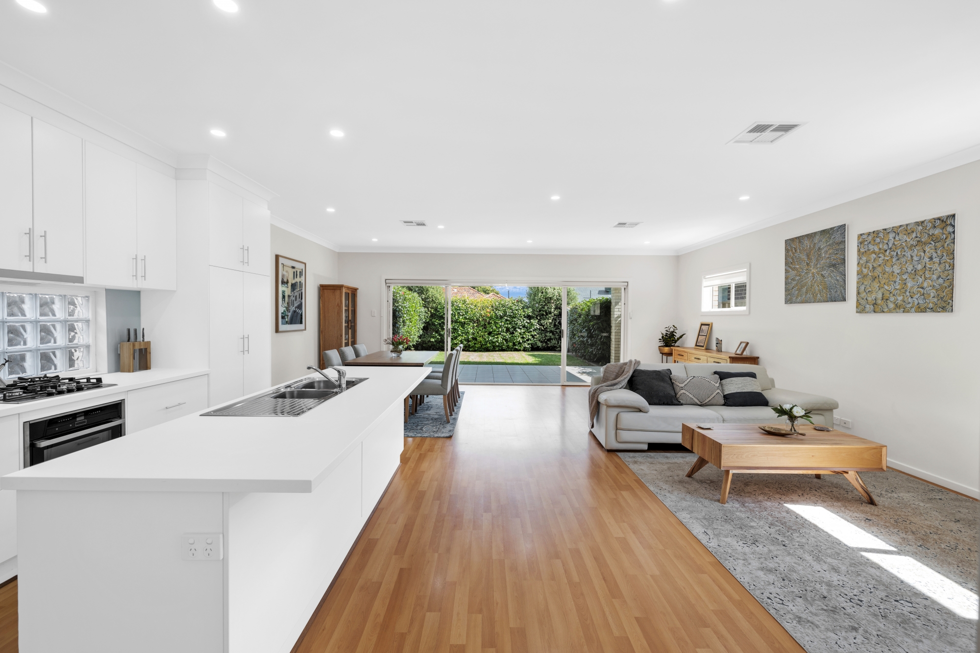 The generous accommodation consists of 3 bedrooms (the main with en-suite and walk in robe), 2 bathrooms, stunning kitchen with ‘as new’ European appliances, very spacious living/dining/family area that seamlessly opens to a vast alfresco area – ideal for entertaining on a grand scale.
